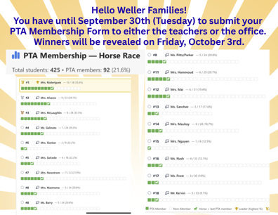 Click on the image above to see how your child's class is doing in our PTA Membership Drive!
